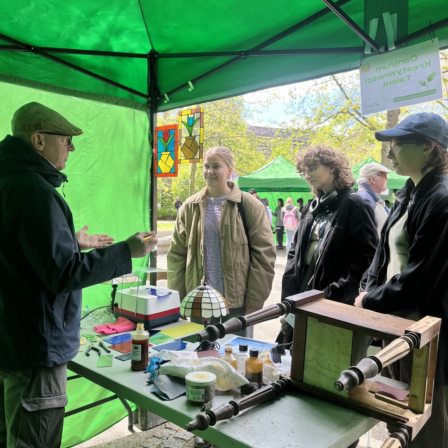 - Pracownia witrażu, przybliżająca uczestnikom techniki pracy ze szkłem i możliwości twórczego recyklingu.